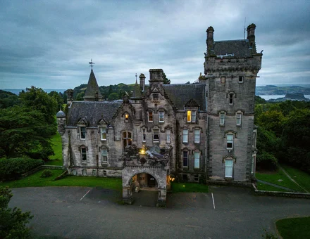 An elegant 19th century mansion located near Dumbarton, set amidst picturesque gardens and woodland.