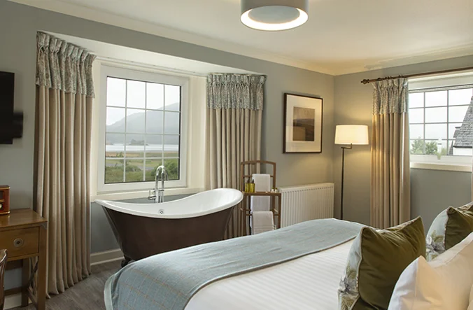 Choose from cosy classic rooms to deluxe loch-view king rooms or enjoy the spacious Island View House—a self-catering cottage with private hot tub, ideal for families and groups.