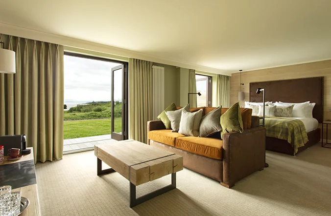 Comfortable, well-appointed rooms—many with water views—provide a restful retreat. The Driftwood Spa offers a tranquil escape with a 17-meter pool facing the mainland, thermal experiences, a Rasul Mud Room, and rejuvenating treatments using the Hebridean skincare brand, ishga.