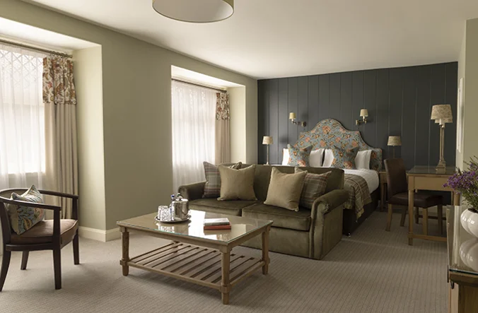 The hotel blends traditional Scottish charm with modern comforts, offering 98 elegantly designed rooms and suites, many of which feature stunning views of the countryside and river. Recently renovated suites offer luxurious accommodations with four poster beds, picturesque views and thoughtful extras.