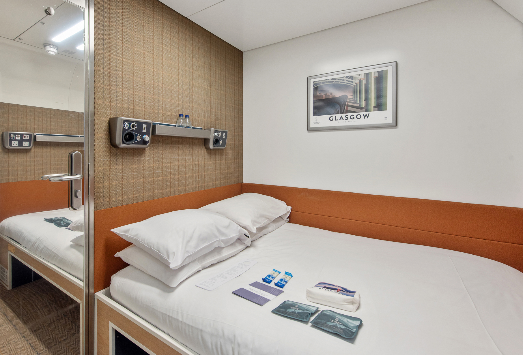Our flagship room features a double bed with a handcrafted Glencraft mattress and an en-suite shower room. Enjoy priority access to the Club Car and station lounge access before and after you travel. Complimentary breakfast included in the Club Car or delivered to your room.
