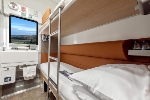 Our private Classic rooms feature twin bunk beds with handcrafted Glencraft mattresses and a washbasin. With an interconnecting room option, you can enjoy your journey with up to four people. Room service available.