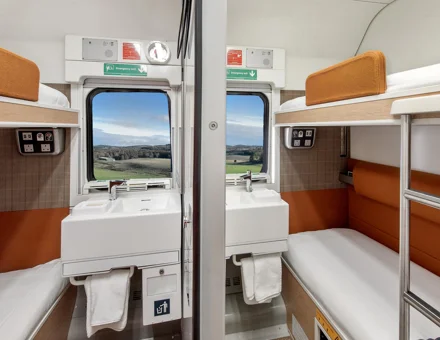 Our private Classic rooms feature twin bunk beds with handcrafted Glencraft mattresses and a washbasin. With an interconnecting room option, you can enjoy your journey with up to four people. Room service available.