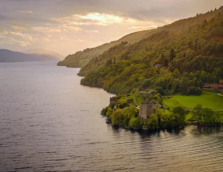 Historic castle ruins situated on the shores of Loch Ness, offering stunning views and a glimpse into Scotland’s medieval past.