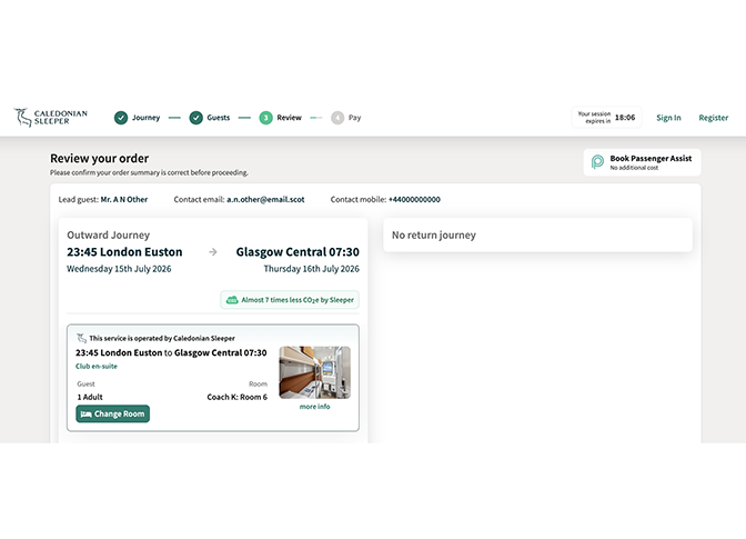 If you want your booking to be added to your Caledonian Sleeper account please make sure to log into your account before starting the booking process.