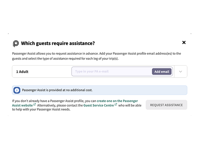 If you have any questions about your journey or accessibility requirements, please use the Live Chat function on our web site to contact our Guest Service Centre who will be happy to assist.