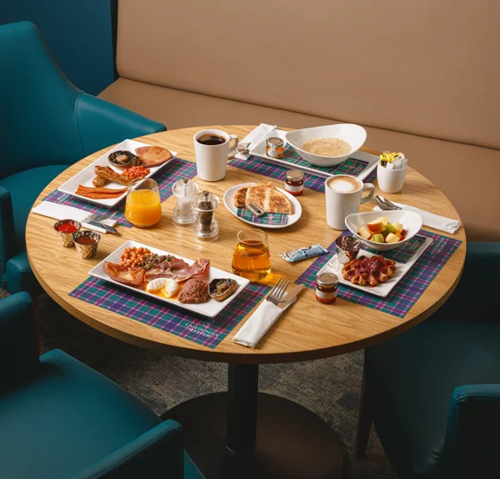 Our Caledonian Double and Club room guests can expect a range of options included in their booking, from a bacon roll to our full Highland Breakfast. Our Classic room guests can purchase breakfast, with options including Scottish Porridge, bacon rolls or yoghurt bowls.