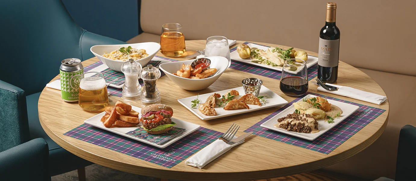 We serve a selection of snacks, meals and drinks onboard our services in our Club Car, room service and to your seat in the seated coach. From Highland farms to city bakeries, we want to celebrate Scotland’s food culture – so let our mouthwatering meals inspire you and make your time with us on Caledonian Sleeper a night you’ll never forget.