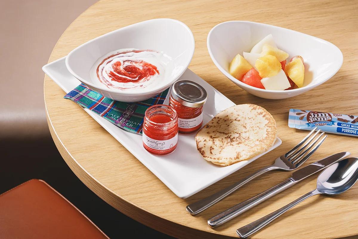 - Continental breakfast (VE) - Homemade pancake, fresh fruit, Alpro Greek style strawberry and raspberry plant-based yoghurt with a choice of Sarah Gray’s strawberry jam or with JimJams chocolate spread 84 kcal £10