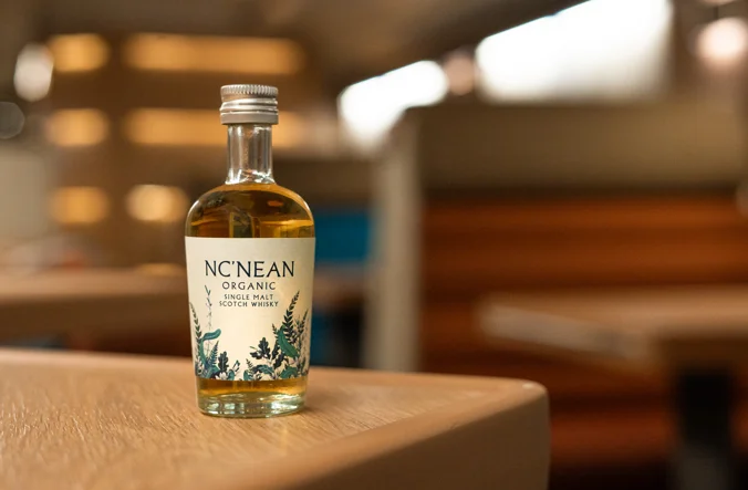 Nc’nean’s small team of eco-conscious drinks fanatics are on a mission to change the way the world thinks about whisky from Scotland. The distillery is B-Corp certified, uses only organic Scottish barley, and power their distillery entirely by renewable energy. Both the full size whisky bottle and the miniature bottle we have on board are made from 100% recycled glass, saving 40% of the carbon compared with using virgin glass. As of 2021, Nc’nean became the first whisky distillery in the UK to be verified as having net zero carbon emissions for scopes 1 and 2.